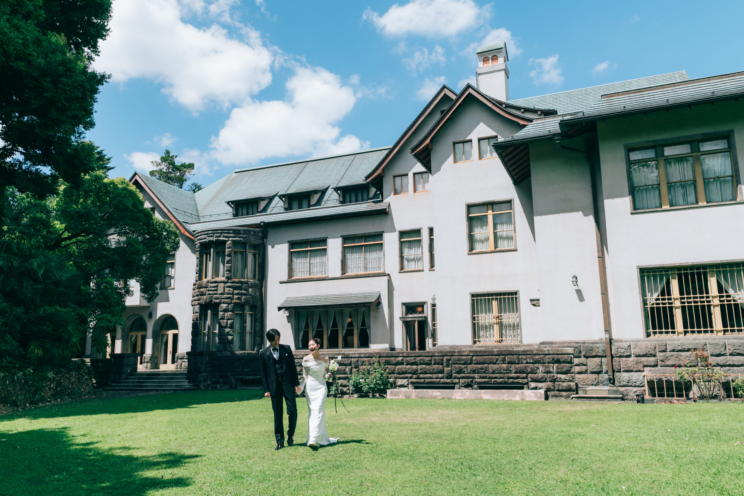 イギリスのチューダー様式を取り入れた重厚感あふれる邸宅内と、都会とは思えない広大な庭園などフォトスポットが豊富。