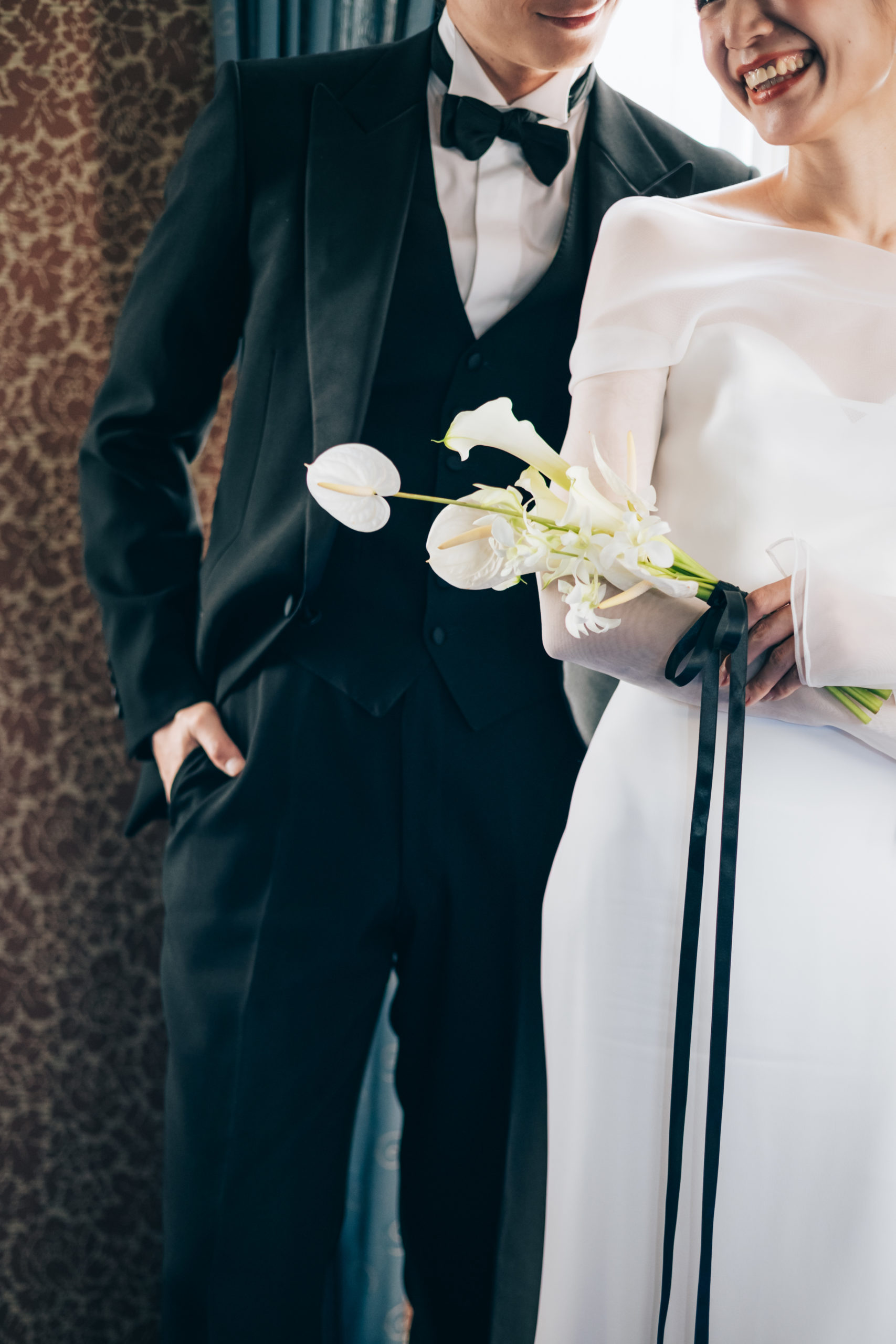 洋装はインポートドレスやオリジナルドレス、和装は白無垢や色打掛などお好きな衣裳をお選びください。 もちろん新郎様の衣裳も自由にお選びいただけます。
